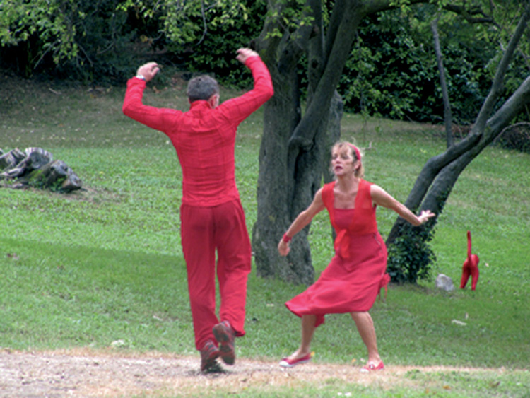 The public garden is an important area in the city, where everydaylife is naturally emphasized. Witnesses of our habits, characters will reveal insolite situations, questionning the intime and time perception. « … Et cetera… » offers a wander for attentive passers-by. The spectators can freely choose their own itinerary and walking rythm. Alone or in group, they will be taken away from real life, establishing their own paths during the saunter.